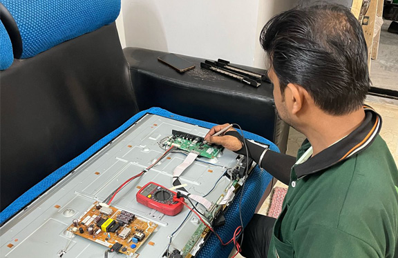 Our certified technicians visit your home to diagnose and fix your TV on the spot. We repair all types — LCD, LED, OLED, QLED, Smart TV & Android TV — all brands, expired warranty only. Free pickup & delivery if workshop repair is needed.
